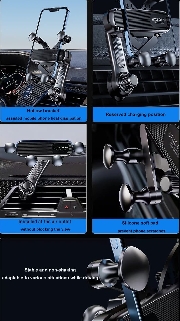 ăGravity vehicle-mounted mobile phone &seat-one-handed operationă when placing the mobile phone, the gravity system will be activated by the weight of the mobile phone itself, which is very convenient and can be put down and taken out with only one hand.Â