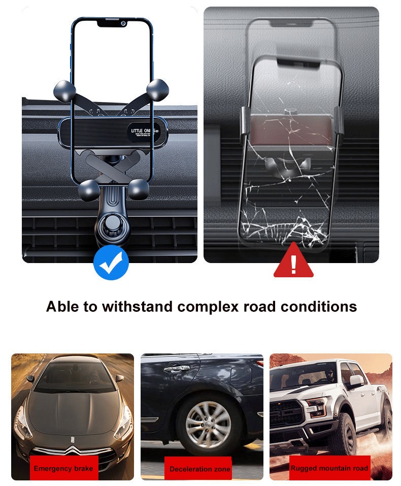 ăStable & Flexible FităUnlike other people, you don't need to press the button on the back of the unit to slide open or do any other complicated operations. Whether you drive on rough terrain or brake suddenly, the triangular bracket will firmly support your mobile pho.
