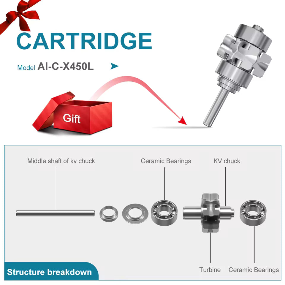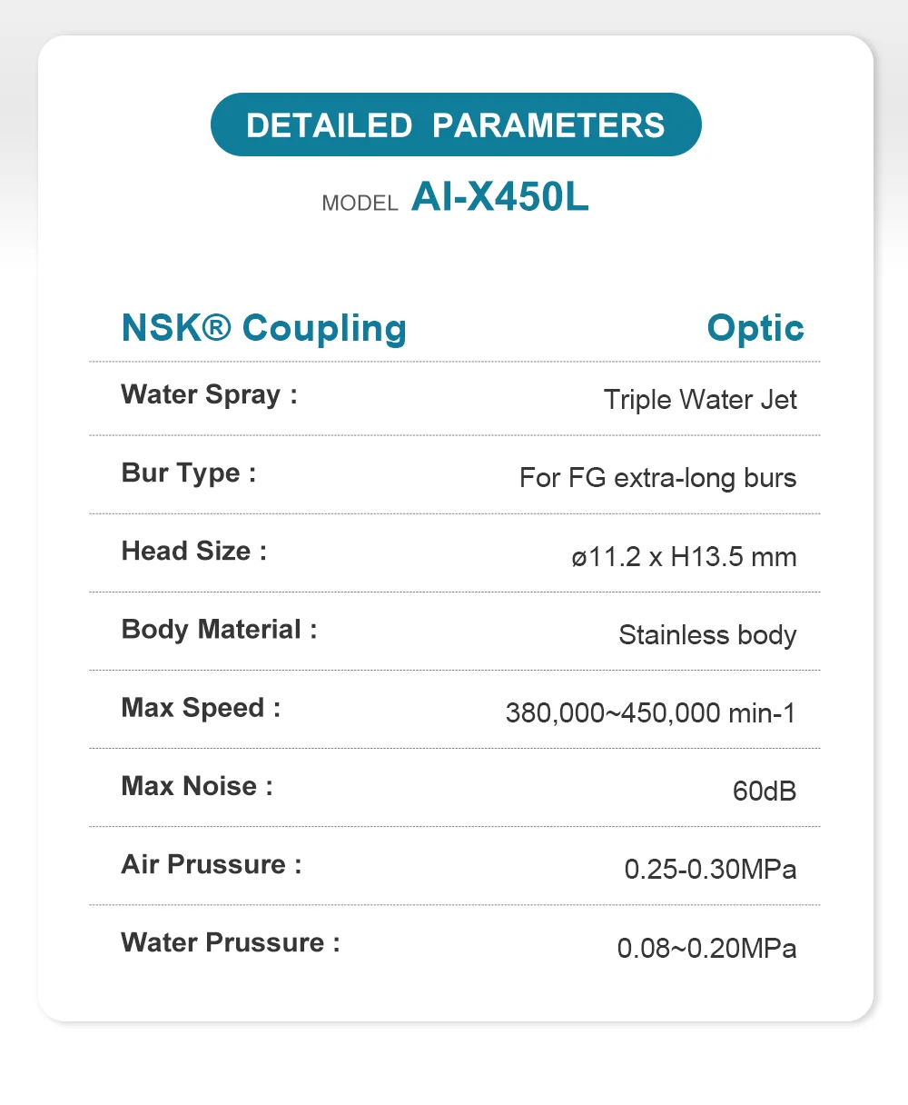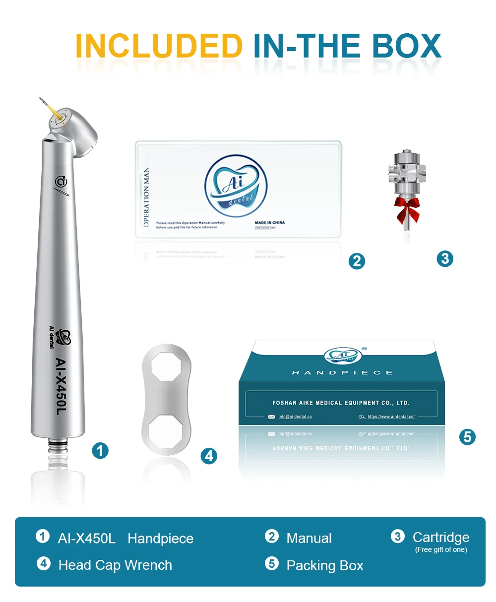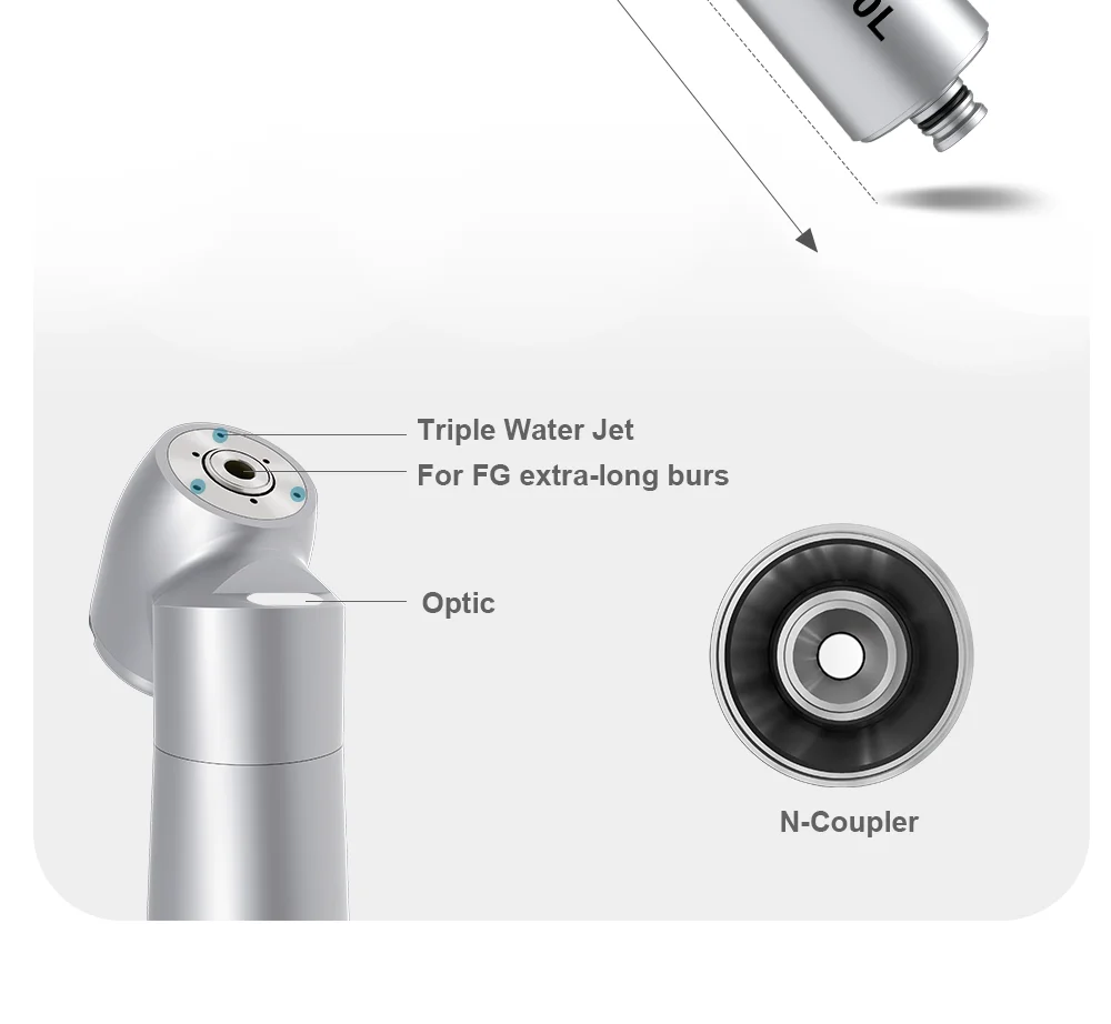 Dental Handpiece 45° Mini Head High-Speed Fiber Optic with Quick Coupler & Water Spray