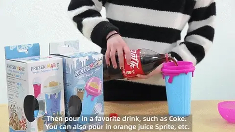 Why settle for boring, pre-made slushy flavors? With FrostCup, you’re in control! Turn your favorite soda into a fizzy slush, make a frozen frappuccino, or chill a refreshing iced tea—the possibilities are endless. Just pour in any cold beverage, give it a quick squeeze, and enjoy a whole new way to experience your favorite drinks!